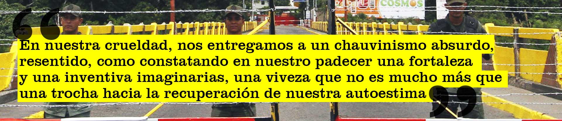 Tal vez por eso despedí a M. en el aeropuerto, después de pasar cinco días en Caracas, con un abrazo y unas extrañas disculpas. No porque me sintiera responsable de lo que vivió en la frontera, aunque es difícil convencerse de lo contrario, ni porque al final no lograse reunirme con él en Coro sino en Tucacas y unos días después, cosa que aún me reprocha cuando hablamos del tema. Sino por ese fresquito mezquino que nos da cuando un extranjero —y en particular uno escéptico ante el relato de nuestros sufrimientos—, padece los infortunios nacionales con el candor y el talante trágico de quienes apenas pueden creer lo vivido. En nuestra crueldad, nos entregamos a un chauvinismo absurdo, resentido, como constatando en nuestro padecer una fortaleza y una inventiva imaginarias, una viveza que no es mucho más que una trocha hacia la recuperación de nuestra autoestima. Y el colmo, sin duda, es que pretendamos que alguien venido de latitudes más francas nos lo conceda, nos reconozca una variante contemporánea del heroísmo. No sé si en su violento aprendizaje de la realidad del país, M. haya podido darse cuenta de ello. Algo sabe, o al menos intuye, cuando compara la locuacidad de la costa colombiana con el violento “cinismo venezolano”. Y yo acepto esa acusación con una sonrisa. Entiendo que sea ese el motivo de que me oculte los detalles de su paso por la frontera, de que no me dé el gusto de contemplar su tragedia. La amistad da lugar también a sus rivalidades. Algún día le explicaré lo que me ha enseñado con ese gesto. Tal vez esta crónica lo haga. Del modo que sea, lo bueno es que ya no tengo que intentar convencerlo de nada.