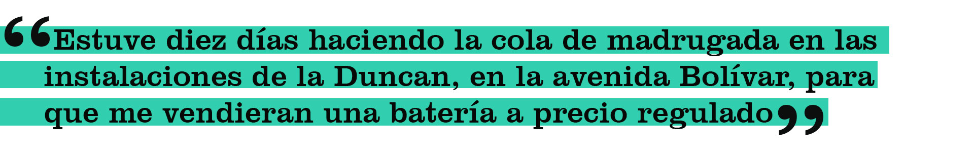 José Manuel Sánchez, habitante de El Frío, carga con su calvario automotor desde hace un año, porque entre repuestos ausentes y servicios mecánicos cada vez más costosos, no ha encontrado la forma de que su Optra levante vuelo. “Lo último fue el drama de la batería, la vaina más agotadora que he hecho en mi vida. Estuve diez días haciendo la cola de madrugada en las instalaciones de la Duncan, en la avenida Bolívar, para que me vendieran una batería a precio regulado. Si uno no está pendiente de marcar la cola a esa hora entonces te sacan. Uno por necesidad se aguanta, porque yo no tengo cómo pagar un batería bachaqueada. Lo que hacíamos esa cuerda de hombres era montar una mesa de dominó y echarnos unos palos, hacer bulla, pues, y rogar que no vinieran a atracarnos. De vez en cuando se pasaba algún policía por con esos bichos uno nunca sabe. Al final compré mi vaina, pero ahora tengo que adquirir dos cauchos. Dime tú con qué culo se sienta la cucaracha.”