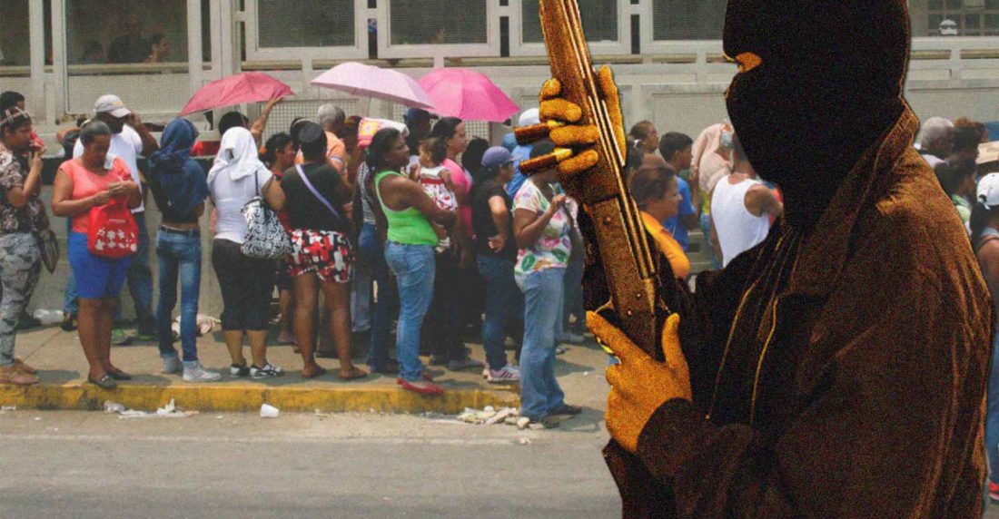 Edward Castillo inventaba excusas en su trabajo para faltar los martes y poder acompañar a su madre a hacer las colas en el automercado Éxito de Los Teques, estado Miranda —no relacionado con la cadena expropiada de hipermercados Éxito. Desde hace varias semanas su progenitora le dictó un veto involuntario. “Cuando en la zona se enteran de que van a llegar camiones a descargar, aparecen los colectivos en motos y secuestran el local. Se meten y se llevan lo que quieren, y dejan las sobras para los que hemos estado haciendo cola por horas”, relata el joven de 26 años. Un día, la injusticia lo indujo a enfrentarse a uno de los motorizados. Le reclamaba con palabras su derecho a adquirir alimentos. La disputa se elevó a unos empujones y Edward estaba dispuesto a propinar puños, pero su adversario se alzó la camisa para dejar al descubierto una pistola. La amenaza lo hizo tragarse la cólera y desde entonces su madre le prohibió volver con ella por temor a que lo tengan fichado.