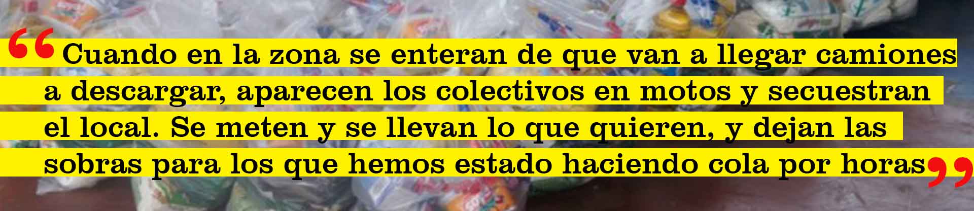 “Casi nunca le protestan al tipo porque después te pueden sacar de la cola o hacer algo peor y lo que la gente quiere, bien o mal, es comprar lo que necesita”, comenta Ortiz. “A veces quita 50 cédulas, a veces 80. Depende de cuántos números vayan a repartir ese día en el mercado. Y a esas les agrega como 100 más que es la de su gente”, cuenta. Esto limita las posibilidades de compra para aquellos que lleguen a una hora más “segura” porque se les cede cupos a quienes se dedican al negocio de la reventa. El tiempo invertido también resulta perdido en ocasiones. Aunque este supermercado abre a las 8 de la mañana, es a las 11 cuando empieza a despachar los útiles con precio regulado. Ortiz señala que “a veces el que llegó a las 7 o a las 9 de la mañana pasa a las 3 de la tarde y ya no queda nada que comprar”.