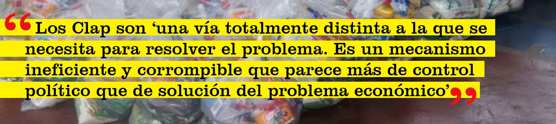 Puede que el bachaqueo tenga los días contados debido a sus altos costos y bajo poder adquisitivo del grueso de la población. O, por el contrario, experimente un auge por el agudizado desabastecimiento. El Gobierno nacional ideó los Comités Locales de Abastecimiento y Producción (Clap) como una forma de acabar con la escasez. Es un sistema de repartición de alimentos que nada tiene que ver con el aumento de su producción, la verdadera raíz del problema. Los comités están conformados por una mujer, por las Unidades de Batalla Bolívar-Chávez (UbCh), el Frente Francisco de Miranda (FFM) y consejos comunales de las comunidades, quienes serán los encargados de suministrar bolsas con productos. Para el economista León los Clap son “una vía totalmente distinta a la que se necesita para resolver el problema. Es un mecanismo ineficiente y corrompible que parece más de control político que de solución del problema económico. Los Clap no aumentan la cantidad de arroz, ni de harina, ni de trigo, ni de azúcar, ni de pollo que hay en el país. Lo que estás haciendo es distribuir la escasez agregando ineficiencia y corrupción al sistema”. Un sondeo de la encuestadora Hinterlaces indica que 79% de la población no se ha beneficiado de estas brigadas de racionamiento.