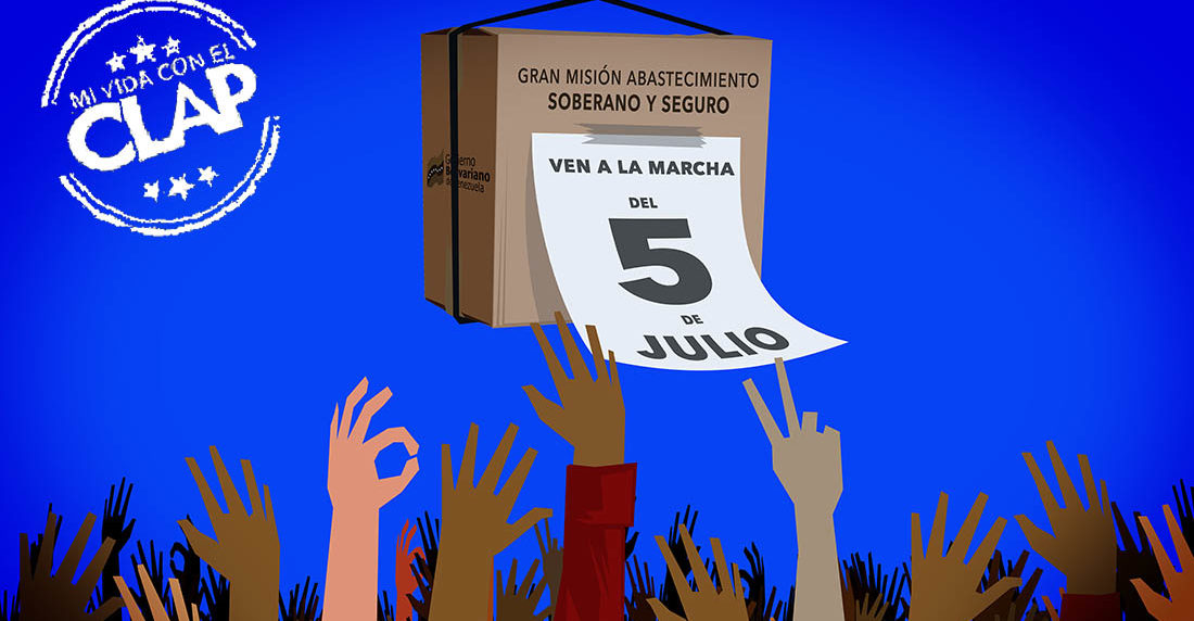 A un chamo de la oficina le llegó un mensaje a su celular bien temprano en la mañana del 2 de julio. “Buenos días, cada CLAP de la parroquia debe movilizar 10 personas para el desfile del 5 de julio”. Un mensaje que mandó un representante de los Comité locales de Planificación al grupo del condominio de su edificio ubicado en Quinta Crespo, en Caracas. Vecinos que tienen un grupo de Whatsapp que nada tiene que ver con entrega de bolsas, recolección de firmas o pagos de productos del CLAP, por donde ahora el gobierno busca repartir lo que pueda.