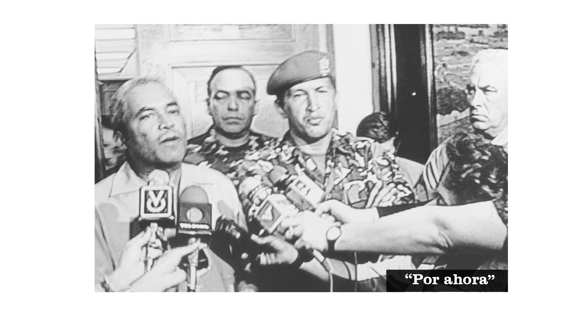Hugo Chávez dio los buenos días en televisión nacional aquella mañana, ya rendido. “Compañeros, lamentablemente, por ahora, los objetivos que nos planteamos no fueron logrados en la ciudad capital. Es decir, nosotros, acá en Caracas, no logramos controlar el poder. Ustedes lo hicieron muy bien por allá, pero ya es tiempo de reflexionar y vendrán nuevas situaciones y el país tiene que enrumbarse definitivamente hacia un destino mejor”, dijo en su alocución.