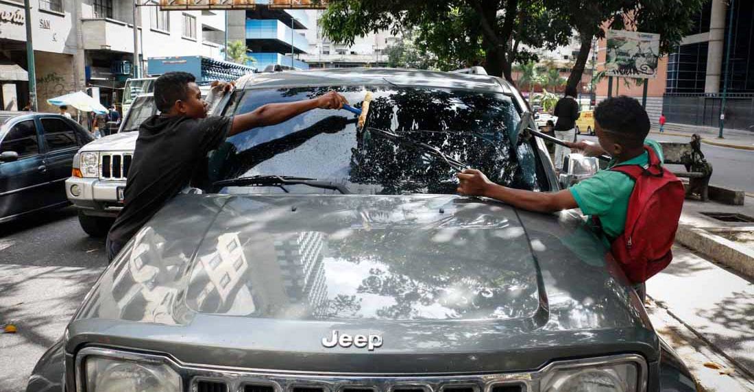 Tres… Dos… Uno. Luz roja. Así es como Jesús* y Daniel* cuentan sus segundos de labores. Limpian los parabrisas de los carros que transitan por la avenida Vollmer de San Bernandino, hacia el centro de Caracas, desde hace más de tres años. Están allí o frente al Abasto Bicentenario en Parque Central. Van casi siempre después del mediodía o “cuando la profesora me deja salir antes de clases”, asegura Jesús, de 12 años. Daniel, de 15 años, no se educa: lo expulsaron del colegio por mala conducta.