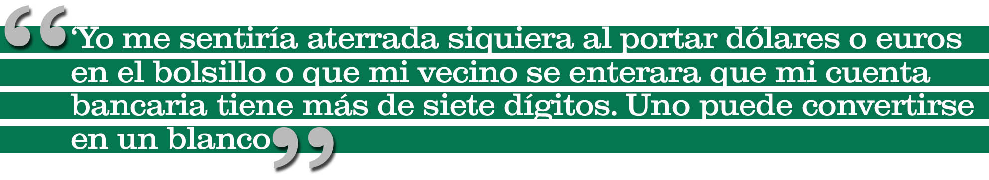 La especialista sostiene que la carga emocional también la vive el venezolano que padece la crisis frontera adentro pues considera que a la sensación de escasez e inflación debe sumársele la de inseguridad por recibir giros internacionales en moneda nacional. “Yo me sentiría aterrada siquiera al portar dólares o euros en el bolsillo o que mi vecino se enterara que mi cuenta bancaria tiene más de siete dígitos. Uno puede convertirse en un blanco”, asevera.