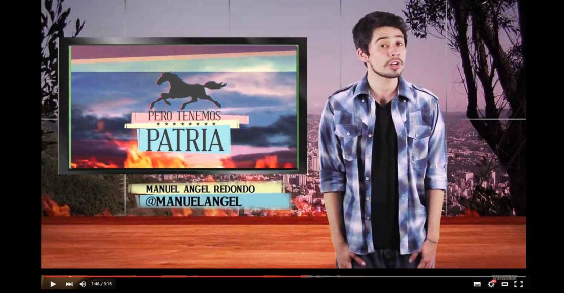 En 2013, Manuel Ángel Redondo tenía 23 años, un Blackberry, como se aprecia en ese último episodio de la primera temporada, y más amigos dentro del país. Ahora, a sus 25, el aparato ha sucumbido ante un Android, y de los afectos muchos han fijado destino en otras tierras. La emigración, que no fue tema en aquellas primeras entregas, pudiera colarse en los guiones que aún no han sido escritos. Después de todo, es un asunto que orbitó en torno al equipo de producción. “Ahora hay otro grupo de gente que está trabajando con nosotros. De los originales se fueron muchos, pero el núcleo creativo seguimos siendo los mismos, los de Plop y yo”, dice Redondo. Los libretos de Pero Tenemos Patria son desarrollados por el presentador junto a Juan Andrés Ravell – creador del Chiguire Bipolar, hijo de Alberto Federico Ravell y “dueño de Twitter Venezuela”, según Nicolás Maduro-, Víctor Medina –conocido como “Nanutria”-, Ricardo del Búfalo, Sofía Parada y Estefanía León. De las mismas oficinas y mentes de Plop Contenido han salido productos como El Chiguire Bipolar, El Mostacho, el Test Incómodo y la Isla Presidencial.