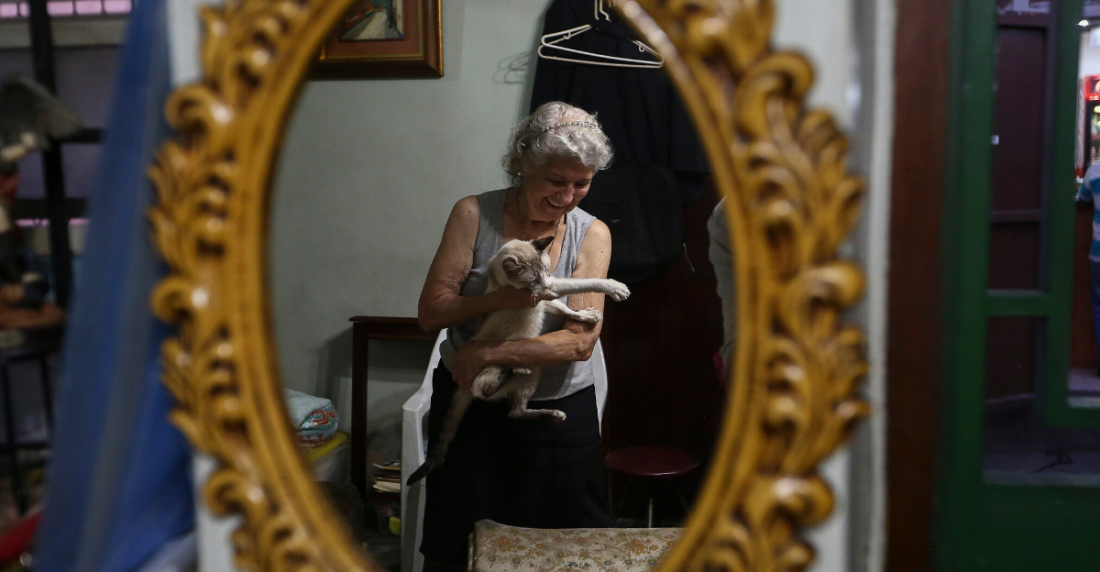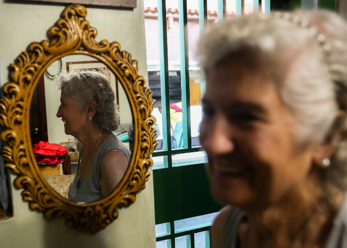 Coqui, el gato beige de 24 años, se levanta y pasa su cola por el sofá. Es uno de los cuatro gatos que tiene. Los otros son Blanca, La niña y Fígaro. Coqui es sordo y, aparte de Néstor, –el muchacho que la ayuda con los preparativos de las fiestas patronales y su rutina— es el único que se pasea por la sala en las tardes. Allí, en su vieja morada colonial, Amelia recibe a las visitas. Les ofrece dulce de plátano y café. También es el sitio de las tertulias sobre el acontecer de la casa parroquial.