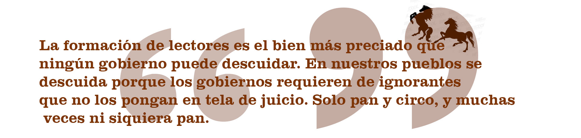 No se leen libros, pero en todo caso se lee. Hay quienes leen todavía, a despecho de las telenovelas y las revistas del corazón y del Jet-Set. La formación de lectores es el bien más preciado que ningún gobierno puede descuidar. En nuestros pueblos se descuida porque los gobiernos requieren de ignorantes que no los pongan en tela de juicio. Solo pan y circo, y muchas veces ni siquiera pan. La lectura es fuente de humanismo, de criterio y reflexión. Nuestros gobiernos son mezquinos y no lo entienden así. Se invierte más el erario en la guerra que en la educación, que en la formación de buenos maestros.