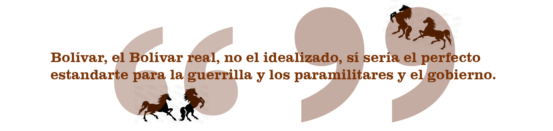 Bolívar, el Bolívar real, no el idealizado, sí sería el perfecto estandarte para la guerrilla y los paramilitares y el gobierno. Yo no sé cómo en los actuales “diálogos de paz” cada uno de estos ejércitos se atribuye la representación del pueblo colombiano: ninguno de ellos lo ha representado en justicia, jamás. Si la guerra entre gobierno y guerrilla lleva poco más de 50 años, los colombianos vamos a necesitar de otros 50 años para creer que la paz será verdad.