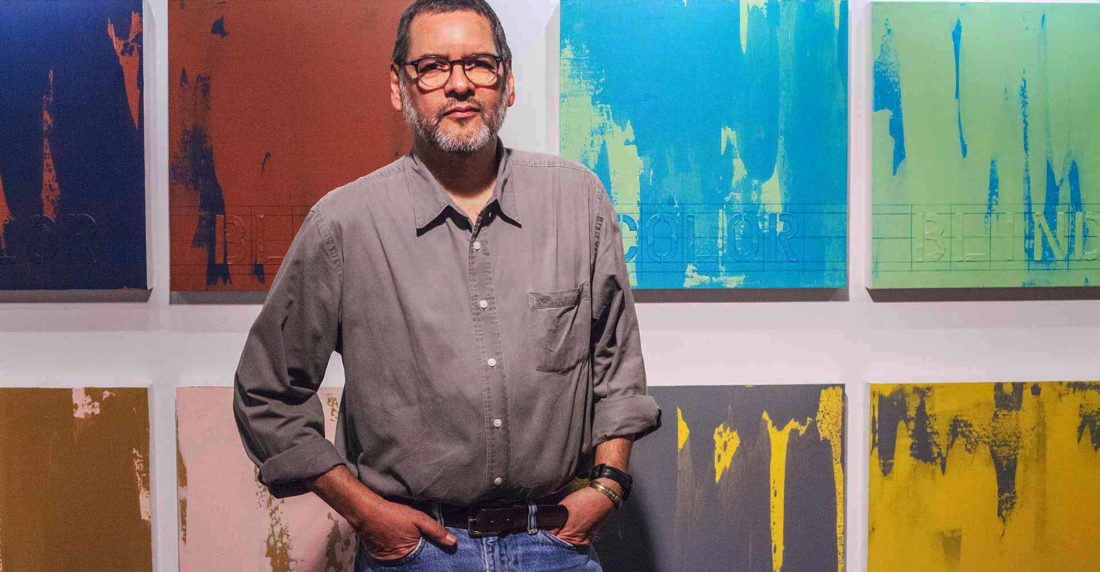 Comenzó en 2009 como una pequeña investigación paralela a las demás series de obras que realizaba a finales de la década pasada. Una inquietud, un sobrecogimiento, un desconocimiento sobre el mundo del daltonismo lo llevó a indagar al punto de la ejecución pictórica. “El color era lo que me interesaba, no la forma”, explica.