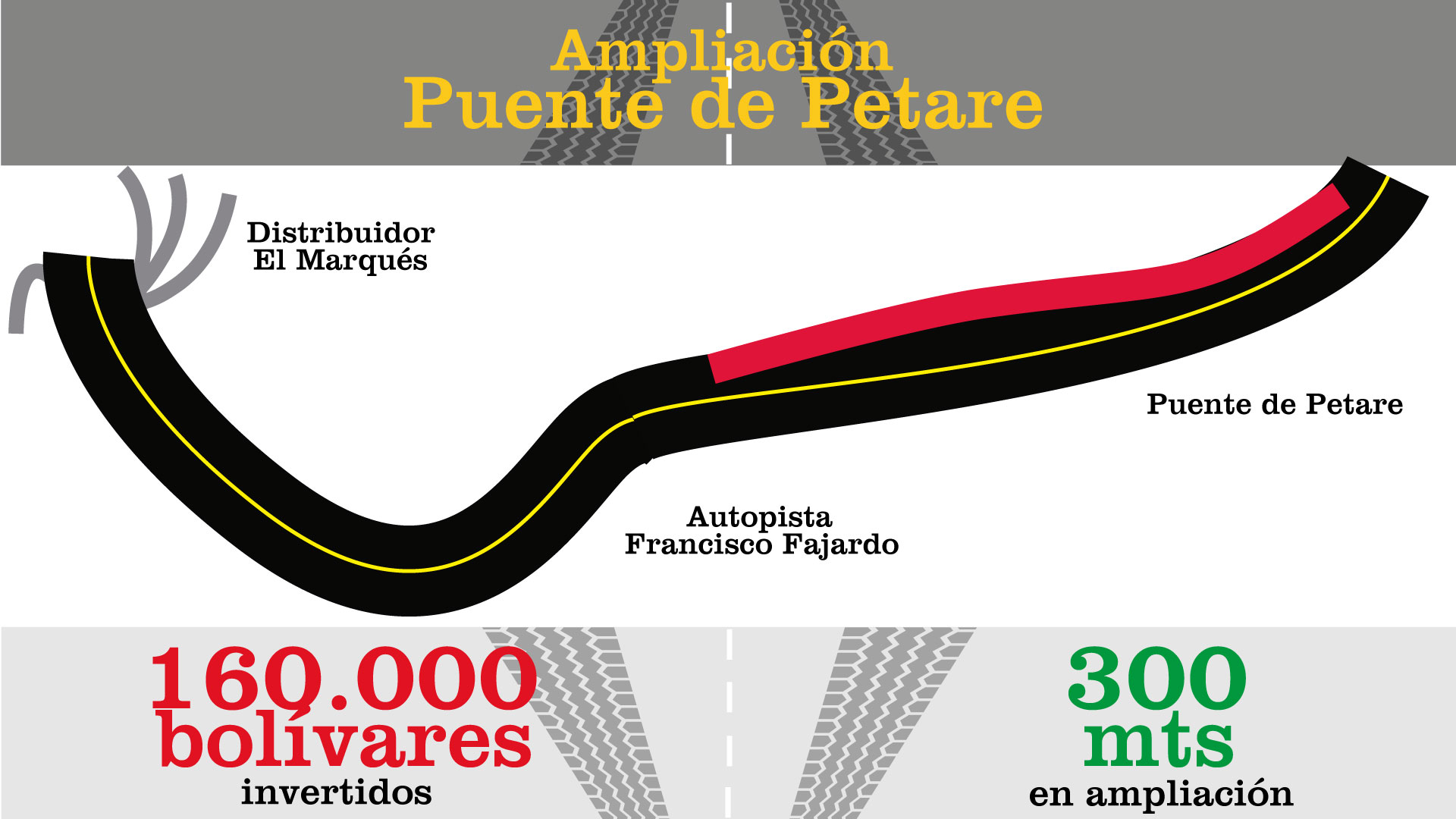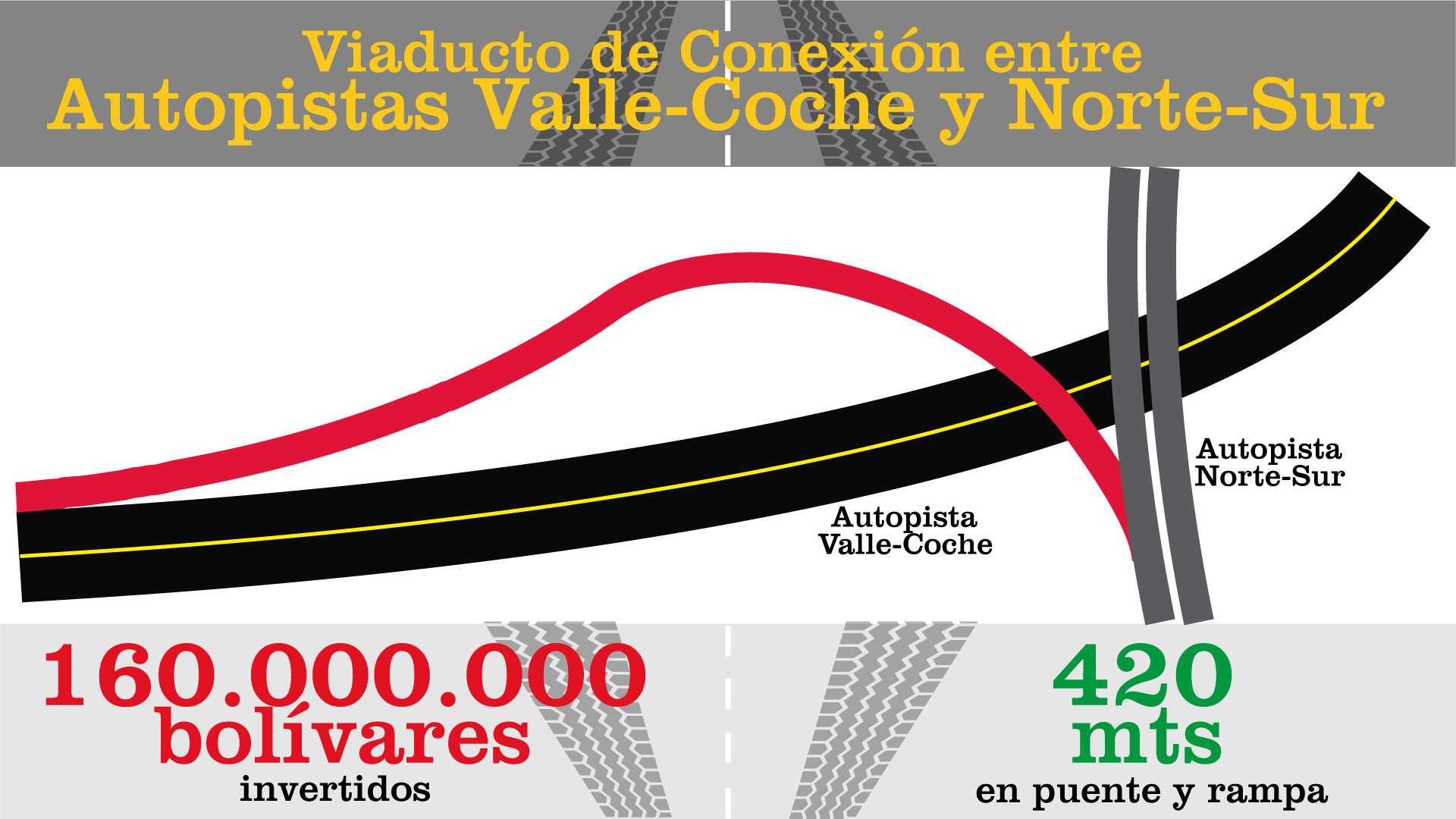 De millón en millón el Gobierno Nacional invirtió en soluciones viales que aligerarían el tráfico capitalino en las zonas más críticas, de acuerdo con el ministro de Transporte Terrestre y Obras Públicas, Haiman El Troudi. Son 14 obras viales distribuidas en puentes de hierro y concreto, elevados, ampliaciones y rampas. Se ha invertido 816 millones 160 mil bolívares.