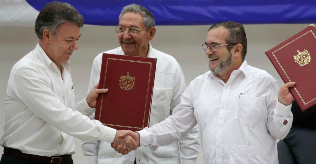 Se logró un acuerdo de paz entre las Fuerzas Armadas Revolucionarias de Colombia y el gobierno de Juan Manuel Santos, que incluye beneficios políticos y facilidades para insertarse a la vida civil. Este 26 de septiembre se firma el acuerdo, pero la última palabra la tendrán los electores colombianos en octubre, mientras Venezuela luce desprotegida ante la posible herencia delictiva Colombia le abre los brazos a la paz. Tras más de 50 años de confrontación, el pasado 24 de agosto, los representantes de las Fuerzas Armadas Revolucionarias de Colombia (FARC) firmaron un acuerdo histórico con el Gobierno de Juan Manuel Santos para sellar la paz que debe ser refrendado en las urnas electorales, y así proscribir las urnas funerarias como método de resolución de conflictos.