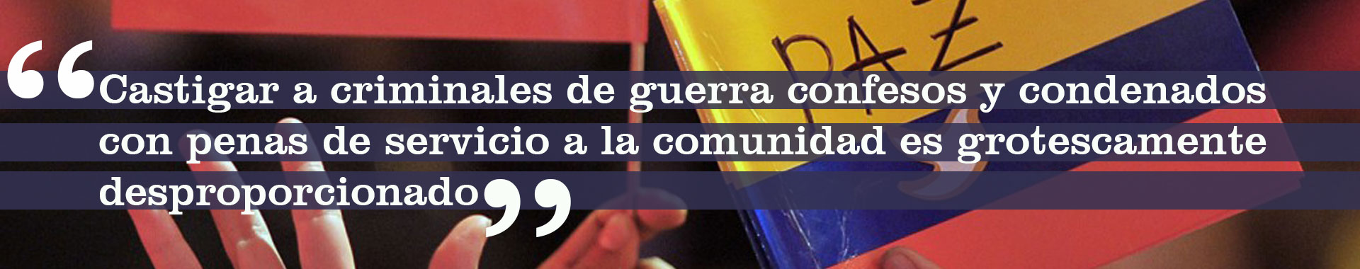 José Miguel Vivanco, director para las Américas de Human Rights Watch, dijo al respecto a BBC Mundo: «Castigar a criminales de guerra confesos y condenados con penas de servicio a la comunidad es grotescamente desproporcionado». Añadió que «la comunidad internacional no debería hacer la vista gorda ante esta fachada de justicia en nombre de la paz».