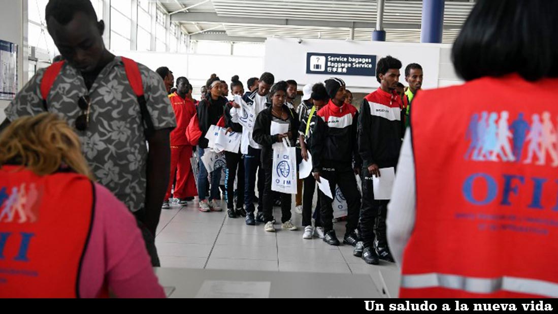 En la parte delantera del avión Nidal viaja sola con sus cinco hijos de entre 3 y 12 años, que colorean tranquilamente. «Necesito una vida para ellos», cuenta esta sudanesa, que pasó cuatro meses en la cárcel. «Como madre es mi deber protegerlos. No los golpearon. Pero vieron de todo».