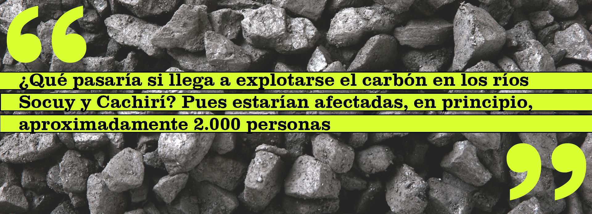 Lusbi Portillo, coordinador de la ONG Homo et Natura, explica que esa expansión se traduciría en la apertura de minas en los alrededores de los ríos Socuy y Cachirí. La intención, entre otras, es aumentar las cantidades de carbón —en 2014 se produjeron 682.858,72 toneladas métricas en Zulia—, para alimentar un proyecto de carboeléctrica, en el que participará la empresa china Sinohydro con una inversión de 7 millardos de dólares.