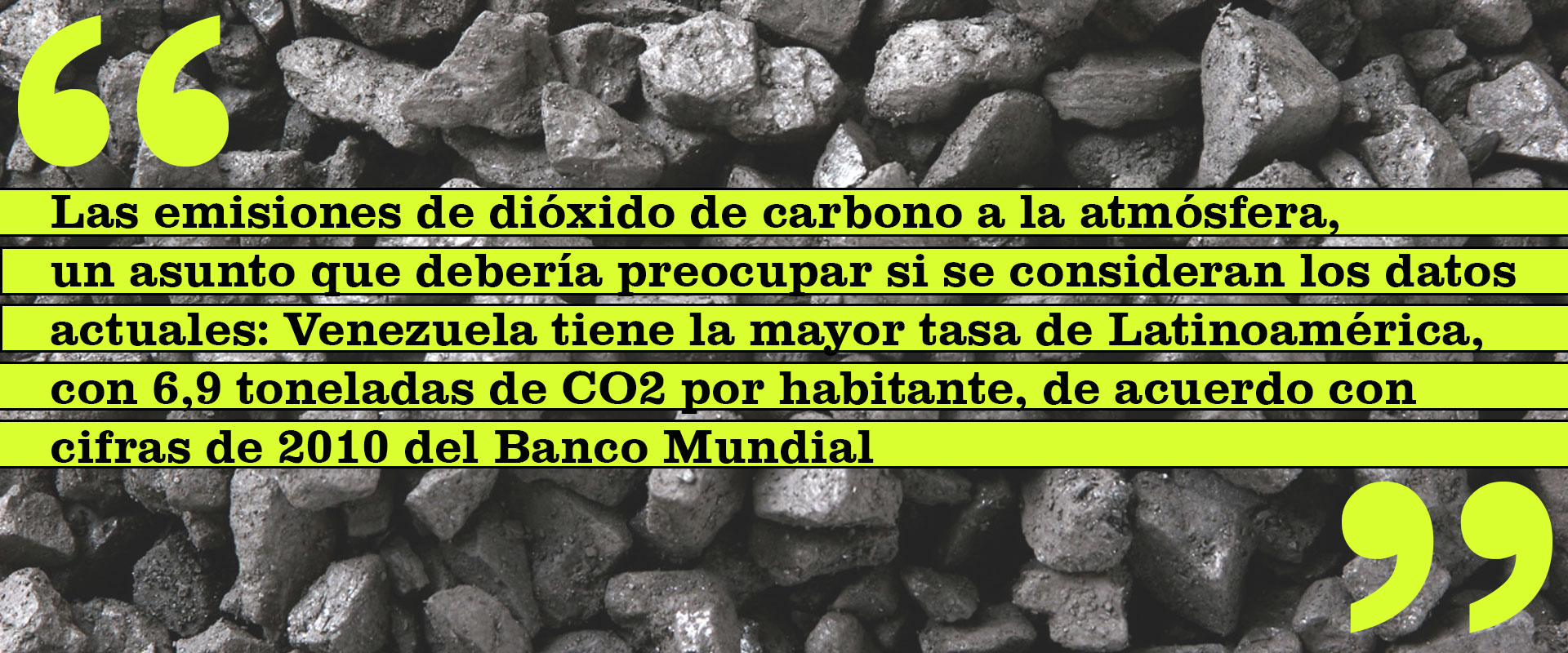 También habría que considerar otros daños: por cada tonelada de carbón, se deben extraer cinco toneladas de suelo, según el informe de 2005 del Ministerio del Ambiente. A eso se suman la deforestación y las emisiones de dióxido de carbono a la atmósfera, un asunto que debería preocupar si se consideran los datos actuales: Venezuela tiene la mayor tasa de Latinoamérica, con 6,9 toneladas de CO2 por habitante, de acuerdo con cifras de 2010 del Banco Mundial.