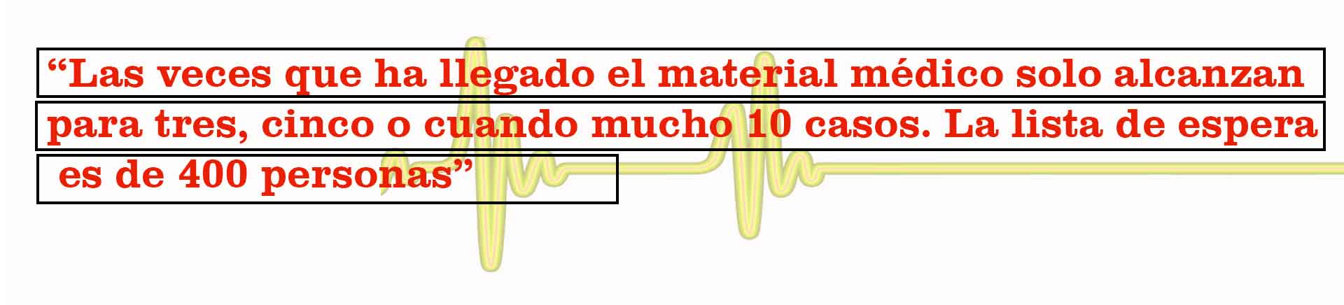 Jesús Velásquez aclara que, más allá de que no estén los insumos, las veces que ha llegado el material médico solo alcanzan para tres, cinco o cuando mucho 10 casos. La lista de espera es de 400 personas en promedio. No hay dotación continua que permita reducirla, pues lo poco que llega suele usarse en emergencias y alcanza para algunos pacientes del listado. Por ello, en lo que va de 2015 el HUC ha realizado 40 cirugías y eso ha sido “rasguñando”, comenta Velásquez, quien además es presidente de la Sociedad de Médicos Residentes e Internos.