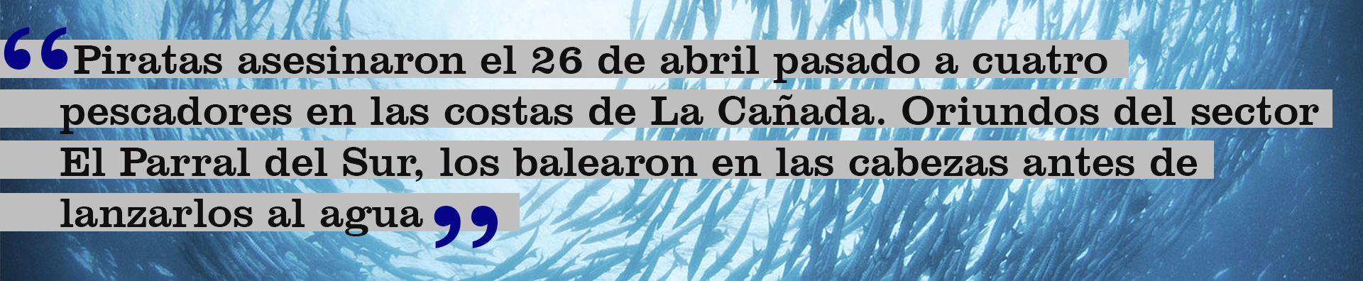 Los crímenes en el Lago del Lago de Maracaibo ocurren con frecuencia galopante y, cada tanto, se imprimen en titulares de la prensa roja. Piratas asesinaron el 26 de abril pasado a cuatro pescadores en las costas de La Cañada. Oriundos del sector El Parral del Sur, los balearon en las cabezas antes de lanzarlos al agua. Ese mismo día, atracaron y dispararon a otro pescador en la playa El Carmelo para robarle el motor de su lancha.