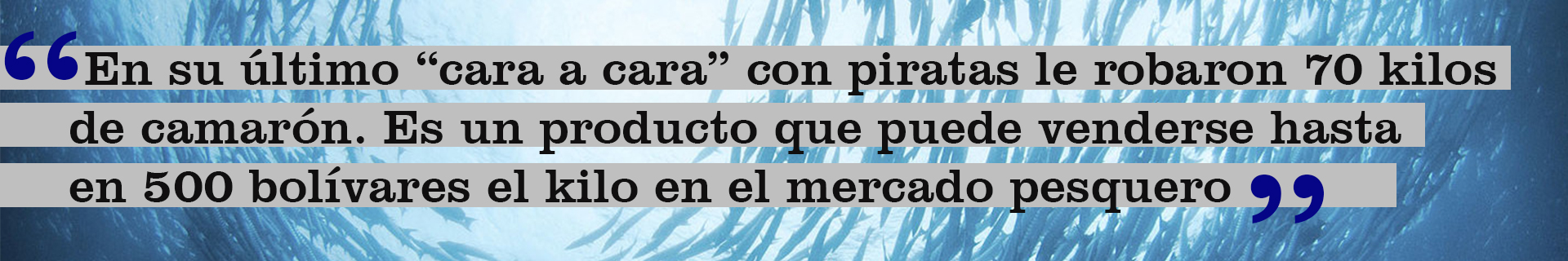 Inició el conteo: “uno, dos, tres…”. El motor no se zafaba de su sitio. “Diez, once…”. Se aflojaron los amarres fuera de borda. “Dieciséis, diecisiete…”. El bendito artefacto cedió a solo dos segundos de una matanza. Lo estibaron a la embarcación contigua y sus tripulantes, criminales de perversa monta, huyeron a toda velocidad con el motín de 850 mil bolívares entre carcasa, potencia de caballaje, reactor y hélice. Los marinos quedaron a la deriva por horas, hasta que unos compañeros de oficio los rescataron. Buscaban corvinas y pescaron piratas.