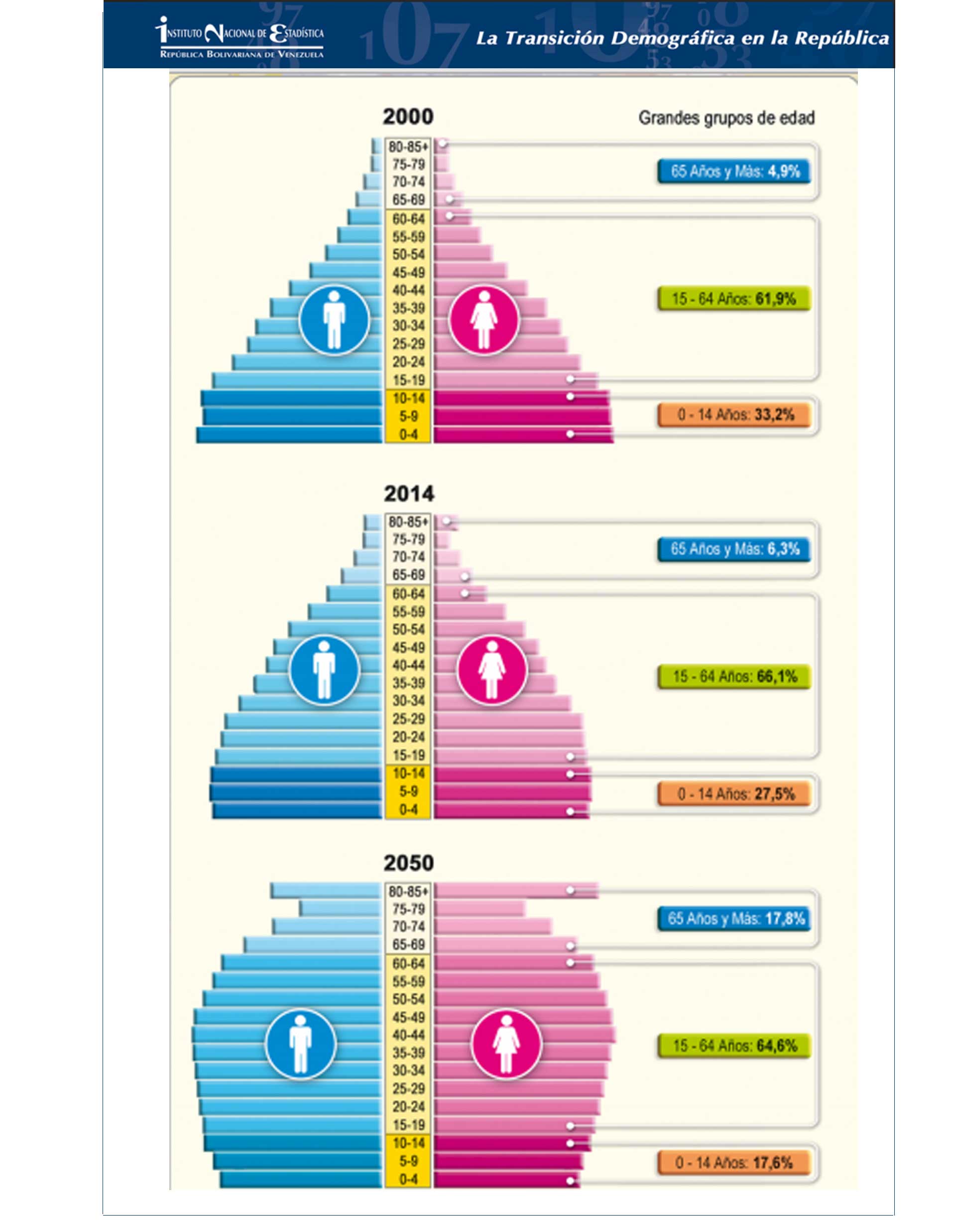 Venezuela madura. La frase “este es un país joven”, tan manida por la demagogia de siempre, va quedando vetusta, muy poco a poco. Se pudiera decir, en todo caso, que el país es adolescente. “Ya la población no tiene mayoría de niños, y eso es muy importante para la vida de un país porque significa que las personas entre 14 y 34 años son las que más trabajan y en las que menos tiene que invertir el Estado en educación y salud. Por eso se dice que baja la dependencia”, puntualiza Mabel Mundó, investigadora del Área de Desarrollo Cultural y Educativo del Centro de Estudios del Desarrollo (Cendes), de la Universidad Central de Venezuela, UCV.