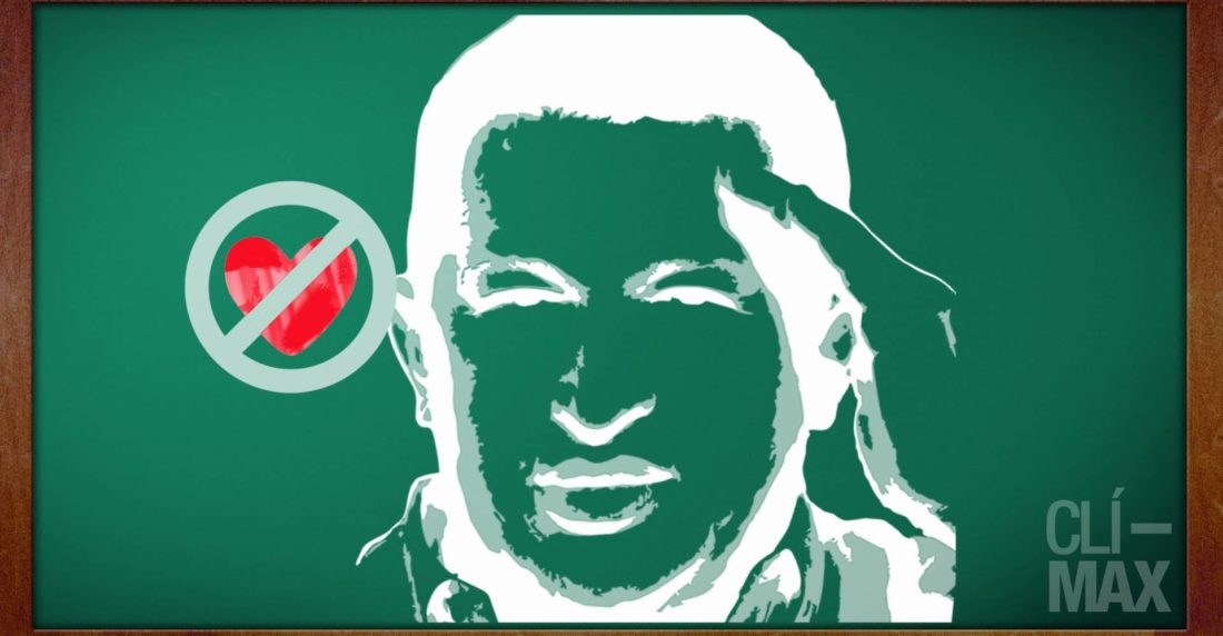 Situación similar ocurre en liceo bolivariano Julio Bustamante, ubicado en El Recreo. Sus alumnos no sólo deben honrar las fechas de la tolda roja, nacimiento y muerte de Chávez, 28 de julio y 5 de marzo respectivamente, sino que también en ocasiones deben escuchar audios del extinto programa Aló Presidente. “Si cumplió años, en el liceo hay que celebrar: se hacen afiches y pendones, se pintan murales de Chávez y dicen mensajes o frases que haya dicho, emulando a algún prócer independentista”, explica Dennis Palma, profesor. Como miembro del Sindicato Venezolano de Maestros (Sindema), alza la voz por los que callan. Se queja de que buscan conducir a un claro adoctrinamiento político, tanto con los textos de cátedras como con las “exhortaciones” a dar a conocer los autores de los acontecimientos más recientes del país.