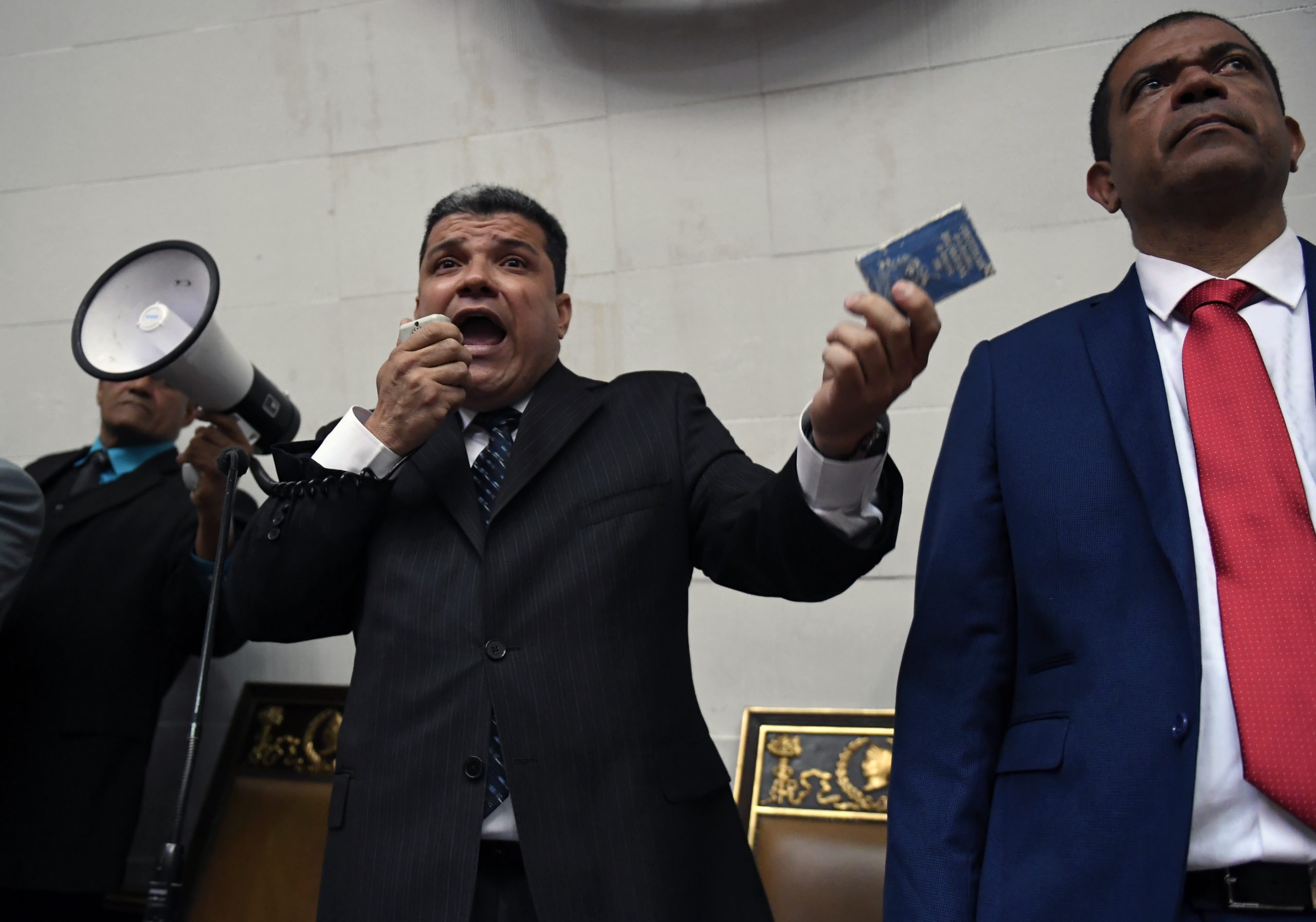 Mientras afuera del Parlamento los diputados de oposición luchaban por entrar a sesionar, representantes de la bancada oficialista gritaban “sesión, sesión… Esta oposición como que no tiene los votos”. Sintiéndose guapo y apoyado por la fracción disidente y aliados del partido de gobierno, Luis Parra comenzó la reunión, sin seguir el protocolo, y se juramentó de forma ilegal como presidente de la Asamblea Nacional. No hubo verificación de quórum, no hubo votación nominal, no hubo votación para cada cargo sino por plancha, ni tampoco el debate fue dirigido por quienes tenían la tarea: Juan Guaidó, Edgar Zambrano o Stalin González, vistos sus cargos salientes. Una juramentación accidentada y cuestionada.