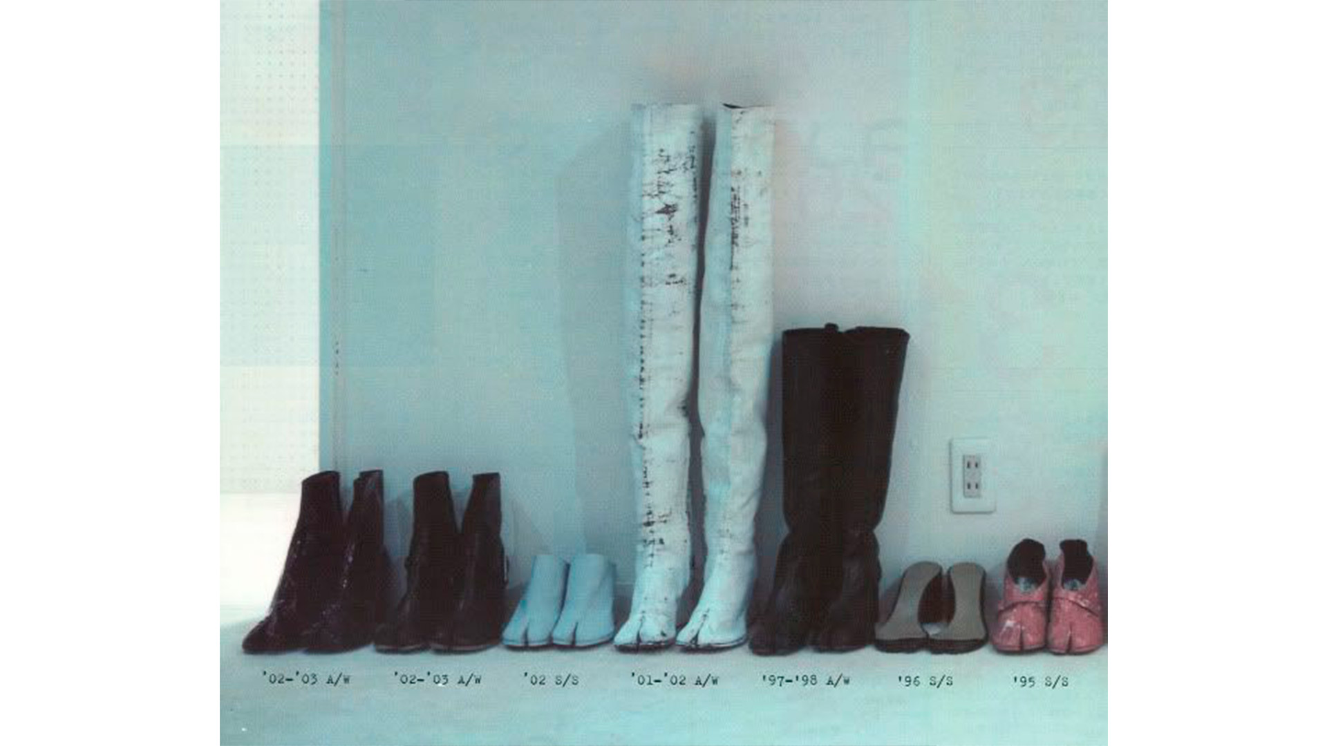 Martin Margiela siempre ha tenido debilidad por el país de las geishas y el pescado crudo. La mayor demostración es el zapato Tabi, inspirado en los calcetines que dividen los pies en dos partes. Introducido por primera vez al mundo del fashion en 1989. Desde ese instante, se convirtieron en un clásico de la marca que se reinterpretó en diversos modelos: desde botas de cuero, hasta sandalias en lienzo y zapatos que se ajustan al pie por medio de cinta adhesiva, emulando algún tipo de tortura japonesa.