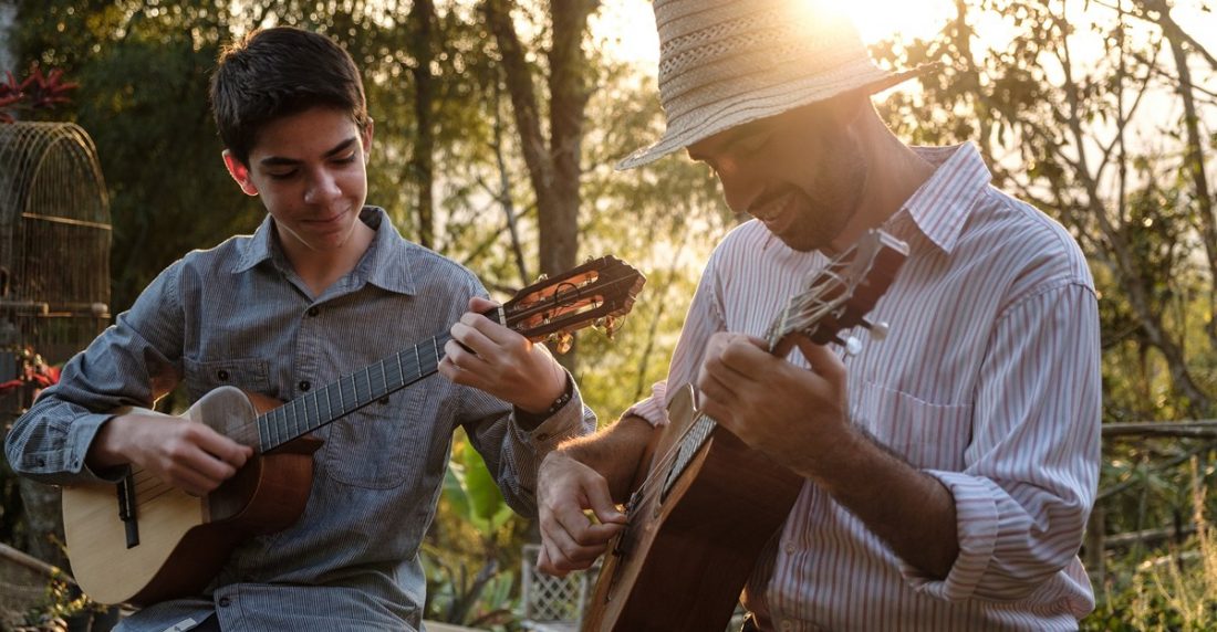 Andrés Cartaya con uno de sus alumnos tocan joropo, música tradicional venezolana.