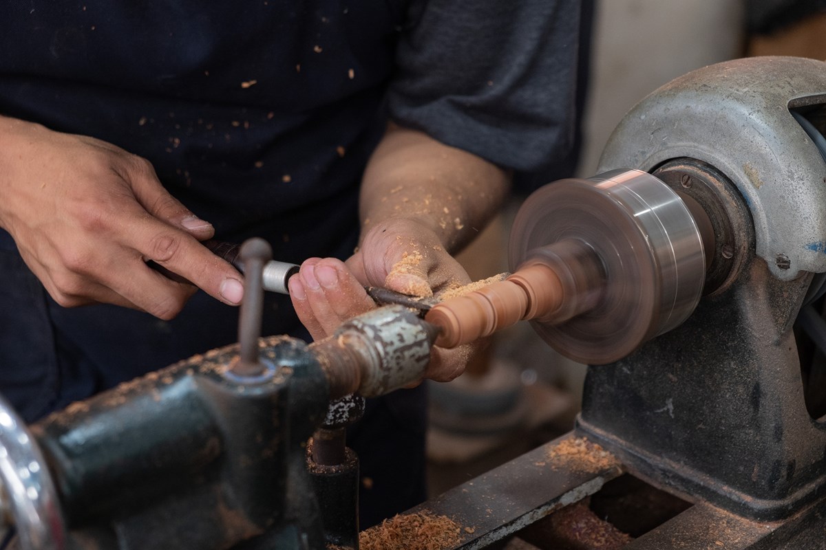 El trabajo para crear una flauta requiere esperar a que la madera se ajuste y avanzar lentamente para evitar el sobrecalentamiento de la máquina y el instrumento.