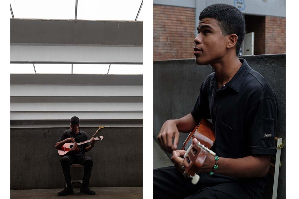 La voz tenor de Cherart Rodríguez hace vibrar las paredes. Canta y charrasquea el cuatro sentado sobre una silla en el tercer piso del colegio donde la Orquesta Típica Juvenil Caracas (OTIJC) hace vida en el oeste de la ciudad. Desde hace cuatro años el joven de 17 años atraviesa la capital en transporte público para asistir cada fin de semana a clases, donde aprende técnica musical y tocar varios instrumentos, desde los de cuerdas hasta la percusión.