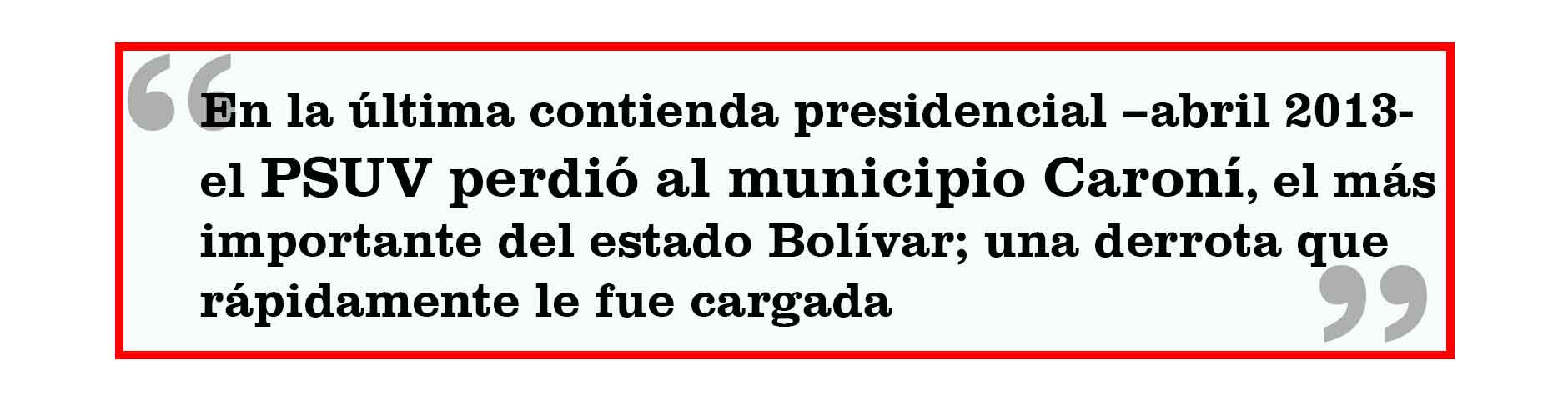 López, upatense de nacimiento pero bautizado como el “hijo de Chirica” por su crianza en ese sector de San Félix, fue el candidato rojo perfecto para fortalecer y hacer crecer el liderazgo desde las bases. Su origen humilde y su trabajo social y político desde los tiempos del MBR-200 le permitieron ganar afecto y más de 100 mil votos en las elecciones municipales de 2008, cuando inició su primer mandato ya en las filas del Partido Socialista Unido de Venezuela (PSUV). El apoyo popular creció en las elecciones de 2013, cuando repitió en el cargo, pero en la última contienda presidencial –la de abril de 2013- el PSUV perdió al municipio Caroní, el más importante del estado Bolívar; una derrota que rápidamente le fue cargada.