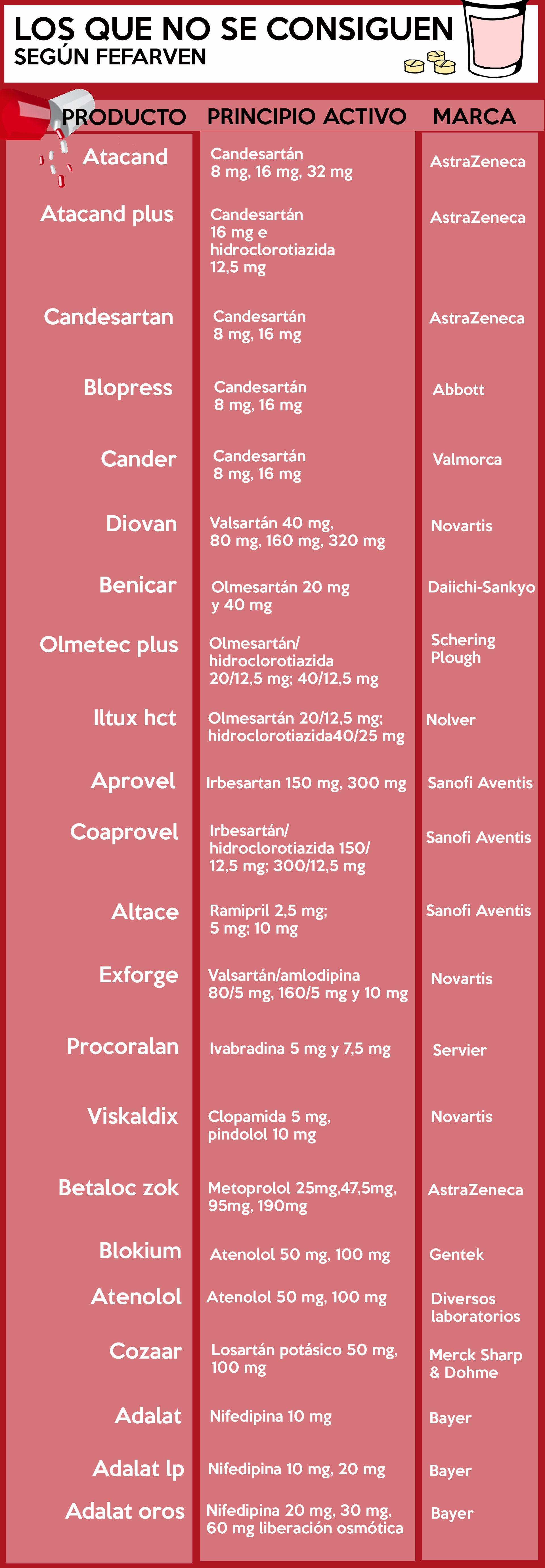 La última lista de 149 medicamentos escasos que difundió la Federación Farmacéutica Venezolana incluyó 28 fármacos utilizados para tratar la hipertensión y cardiopatías coronarias. La tensión arterial alta, por encima de 120 mm Hg, afecta a más de uno de cada cinco adultos en el mundo y a 34 de cada 100 venezolanos. De acuerdo con la Organización Mundial de la Salud (OMS), complicaciones derivadas de la hipertensión son la causa de 9,4 millones de defunciones anuales en todo el planeta.