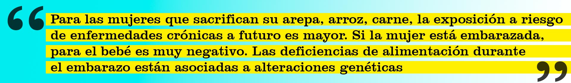 “Para las mujeres que sacrifican su arepa, arroz, carne, la exposición a riesgo de enfermedades crónicas a futuro es mayor. Si la mujer está embarazada, para el bebé es muy negativo. Las deficiencias de alimentación durante el embarazo están asociadas a alteraciones genéticas”, advierte Marianella Herrera.