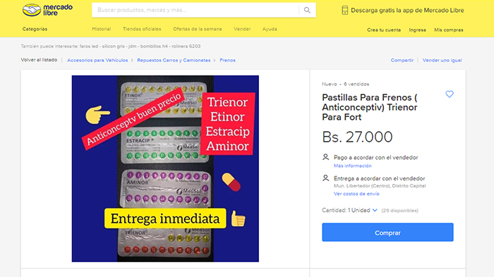 En redes sociales y páginas como Mercado Libre, abundan la venta de estos anticonceptivos, pero por un costo en divisas que no todas pueden pagar