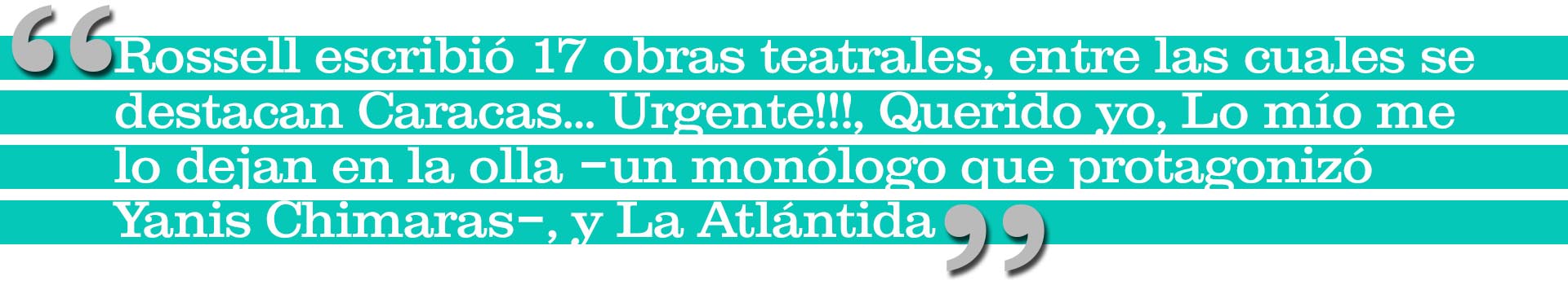 Esta pieza, además, le dio a Rossell un lugar destacado durante aquella década. “Era totalmente vanguardista, no encajaba en la línea de lo establecido por Isaac Chocrón, José Ignacio Cabrujas y Román Chalbaud, ni en las voces de relevo como Rodolfo Santana o José Gabriel Núñez”, apunta Vidal.