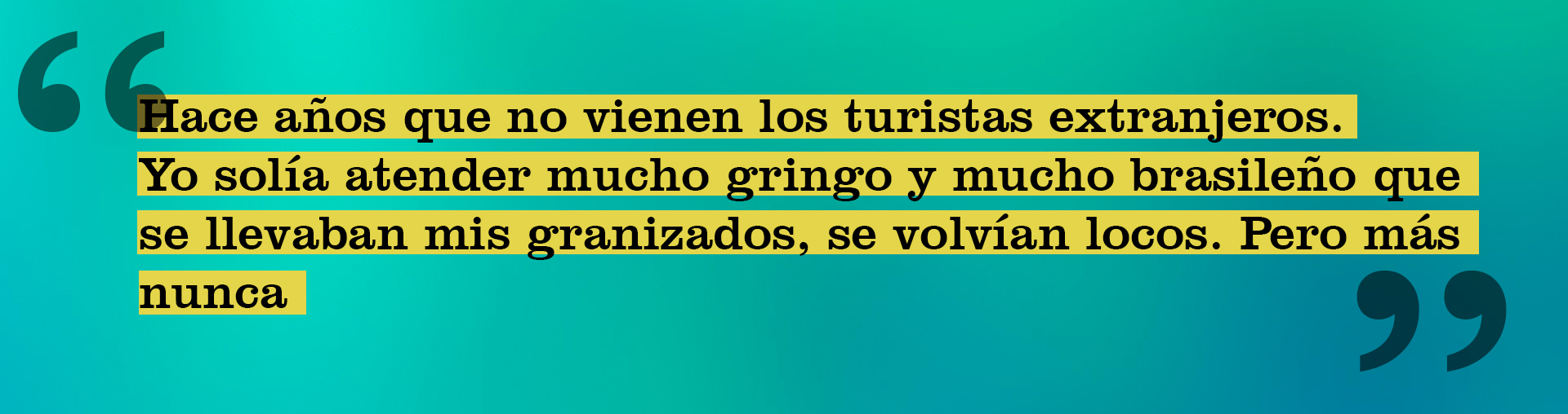 José “Cheo” Cariaco ha pasado los últimos veintidós —de sus treinta y ocho— años vendiendo jugos en una concurrida esquina de la calle Maneiro de Puerto la Cruz. Sirve alrededor de ochocientos vasos durante el día entre las 8 de la mañana y las 2 de la tarde, entre conversaciones, empanadas y las innumerables colas para adquirir productos que se forman alrededor. Se puede ver a gente de toda clase esperando su turno para ser atendidos, puesto que los jugos de Cheo son famosos por contar con las dosis precisas de hielo, azúcar y frutas. “Me ha ido bien con este negocio, pero siempre he querido montar una papelería, lo que pasa es que es muy difícil y costoso”, confiesa risueño, sorprendido ante la propuesta de ser entrevistado por alguien que ha comprado sus batidos desde hace quince años. La ciudad no siempre colabora, pero el ánimo de Cheo lo ha impulsado a mantenerse en su esquina. “A Puerto la cruz le falta de todo, para empezar un buen gobierno, como a todo el país. Hace años que no vienen los turistas extranjeros. Yo solía atender mucho gringo y mucho brasileño que se llevaban mis granizados, se volvían locos. Pero más nunca. Y es que cómo, si esto es un desastre”. Víctima de la escasez, se ha visto obligado a requerir los servicios de los revendedores para abastecerse con leche en polvo y azúcar. “Los clientes no siempre entienden que uno tiene que subir los precios por eso”.