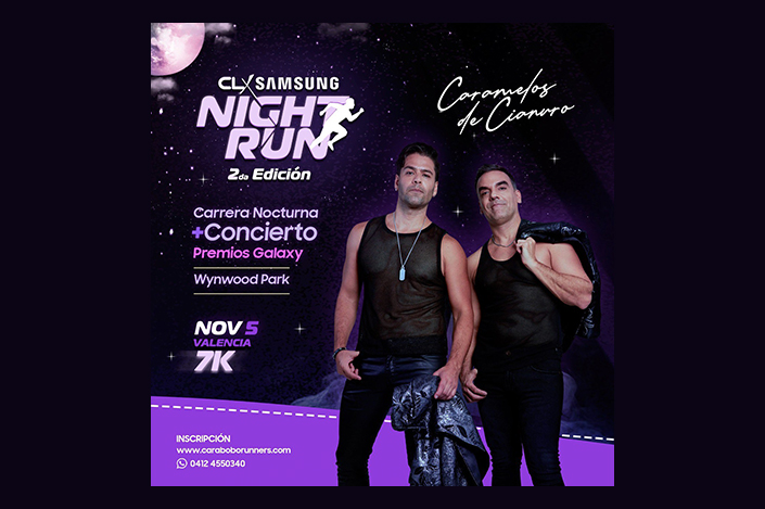 CLX Samsung trae la segunda edición en Venezuela «Night Run» con una distancia de 7 kilómetros, disfrutando de una noche llena de adrenalina, premios, sorpresas y un magnífico cierre con Caramelos de Cianuro.