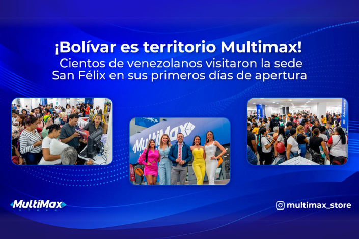 ¡San Félix, muchas gracias por recibirnos! Cientos de venezolanos visitaron la nueva sede de Multimax Store en el estado Bolívar durante sus dos primeros días, viviendo la emoción de las inauguraciones de la multimarca más grande de Venezuela junto a descuentos increíbles, concursos, invitados, sorpresas y mucho más.