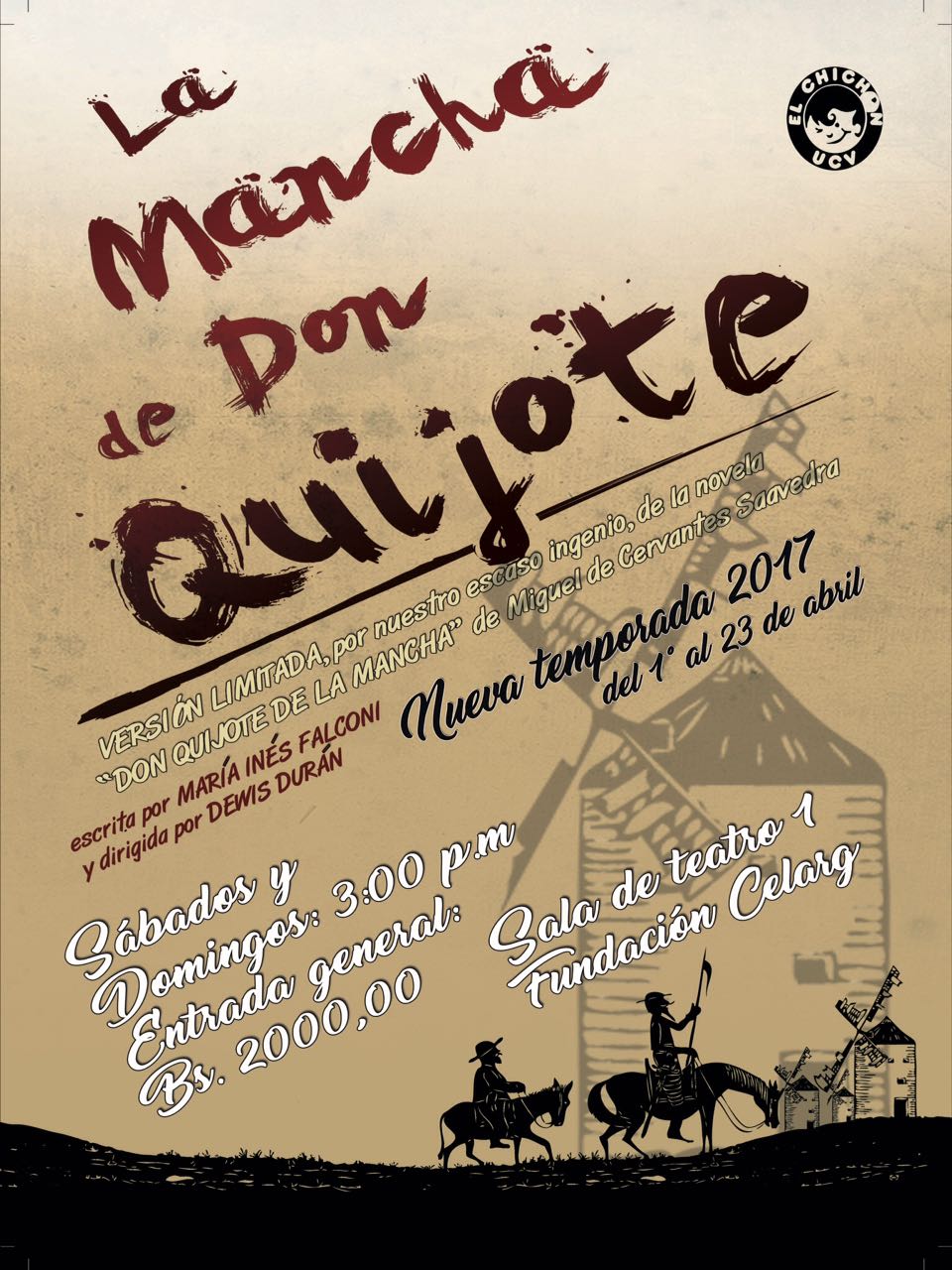 El grupo de teatro, adscrito a la Dirección de Cultura de la Universidad Central de Venezuela, mostrará en escena las diferentes aventuras de Alonso Quijano, junto a Sancho Panza y el gracioso caballo Rocinante, con un toque de humor en su andar por los campos de La Mancha.