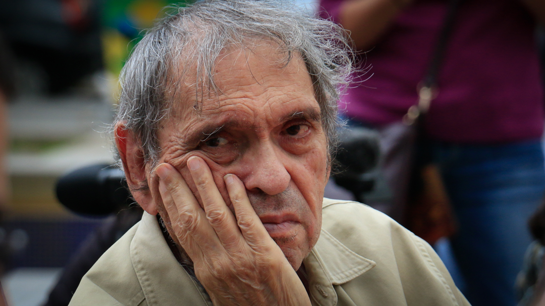 Cadenas, de 88 años, escuchaba paciente y con una expresión casi indescifrable cómo los también autores venezolanos Luis Miguel Isava, María Fernanda Palacios, Alejandro Sebastiani y Rafael Castillo Zapata celebraban «el magisterio del idioma» a través de su obra a la que catalogaron como «modelo de la resistencia ciudadana».