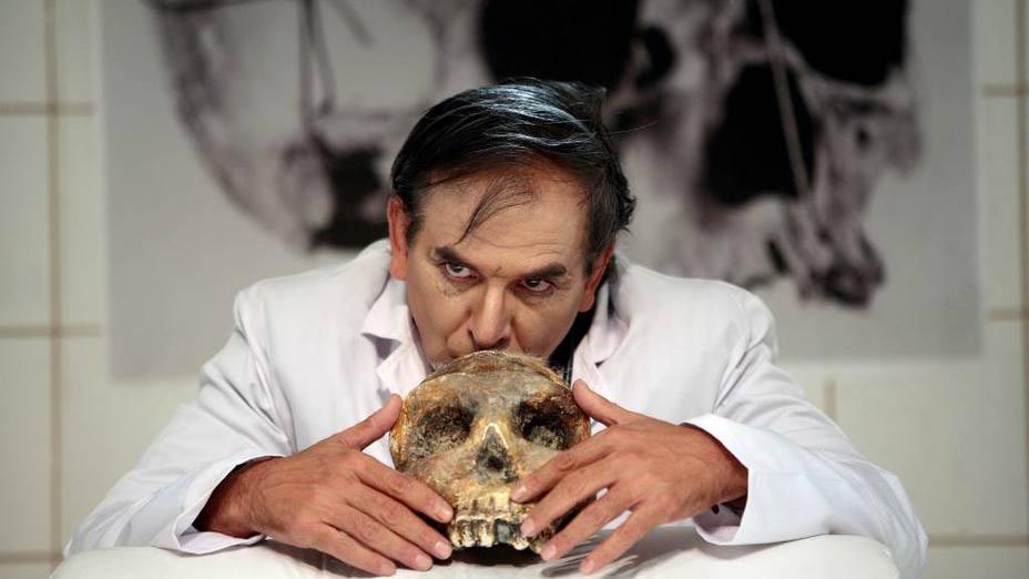 El monólogo está ambientado en el consultorio de Chirinos, que habla de lo divino y de lo humano acompañado de una calavera, algo que aporta teatralidad, pero que además refiere al hecho de que el psiquiatra decía tener un esqueleto robado en un cementerio.