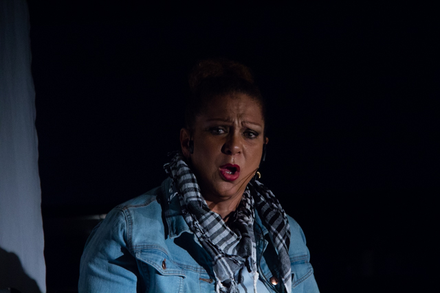 En una especie de mini-función privada, le pido a Gledys que me recite algo de su personaje en inglés. Levanta el mentón, abre los brazos y se lanza: