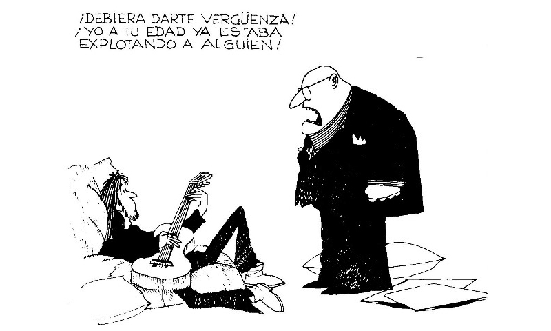 Con Mafalda, Quino hilaba fino. Encontraba la manera de denunciar situaciones sociales a través de las vivencias de una familia clase media de Buenos Aires. Mafalda era la pequeña cuestionadora, con una inteligencia puntiaguda notable. A través de esa voz infantil, y de la de su familia y amigos, Quino reclamaba.