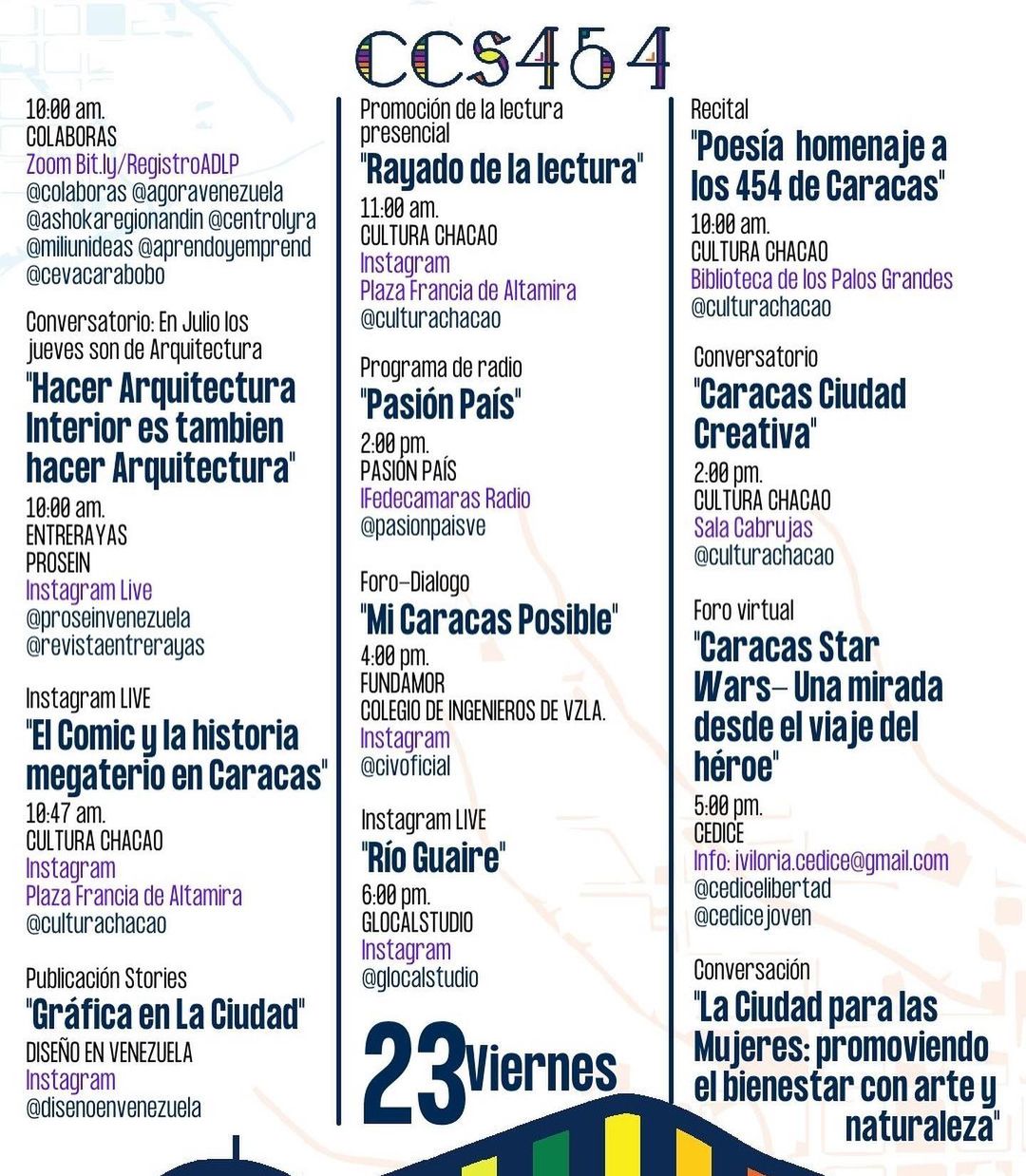 Ya se acerca el cumpleaños 454 de Caracas, por lo que el movimiento SÍudad organizó un amplio calendario de actividades, enfocadas en ciudadanía y cultura, que se desarrollarán hasta el 25 de julio.