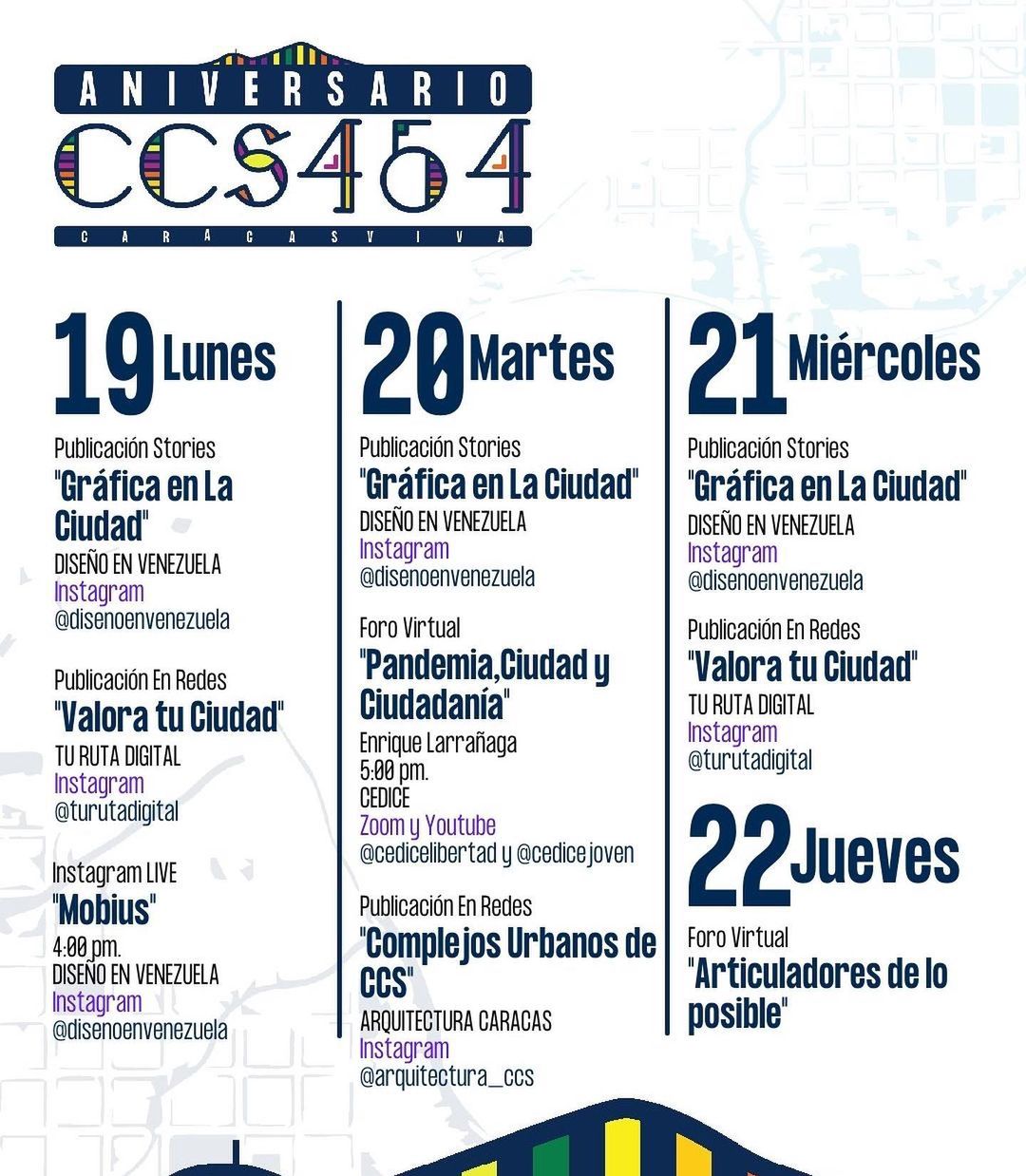 Junto con otras organizaciones, SÍudad celebra el cumpleaños de Caracas todos los años con diversas actividades. Este año, igual que en 2020, se apostará por las actividades de índole virtual. Compartimos el cronograma:
