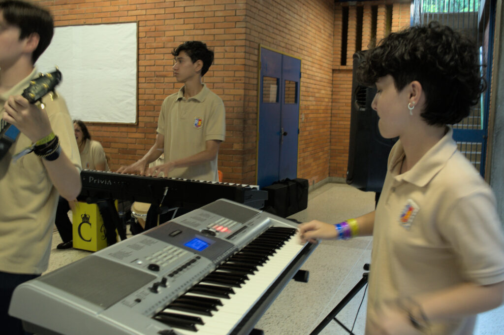 «Nosotros, en el mes de marzo, le pedimos a los muchachos que se anoten en unas listas. Venimos al colegio y vamos pasando a uno por uno para probarlos. En el área de armonía normalmente hay muchachos que saben tocar un instrumento porque ya han estudiado, pero en el caso de la percusión es distinto. Llegan completamente de cero. Y nosotros hacemos la experticia en esas audiciones. Ahí los probamos a ver si tienen ritmo y tiempo. Luego, tomamos la decisión de quién puede tocar cada uno de los instrumentos», cuenta Luis Alfredo Ayala, músico y director general del grupo de gaitas del Colegio Champagnat, quien tiene 32 años de experiencia en el montaje de estos eventos.