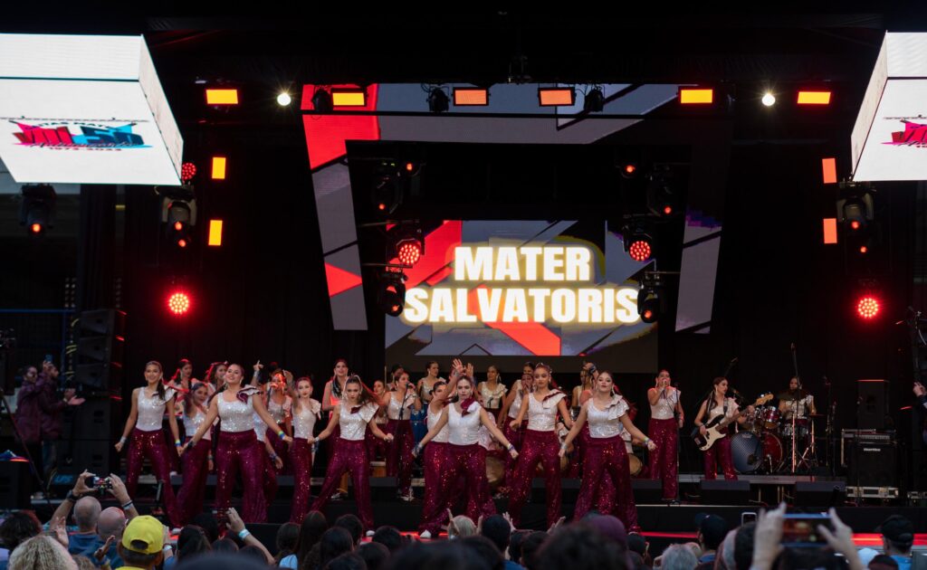 El Colegio Mater Salvatoris actualmente tiene un grupo de gaitas con 42 jóvenes. La mayoría aprendió a bailar con coordinación y a tocar instrumentos durante su temporada gaitera. Foto cortesía de Tadeo Astorga.