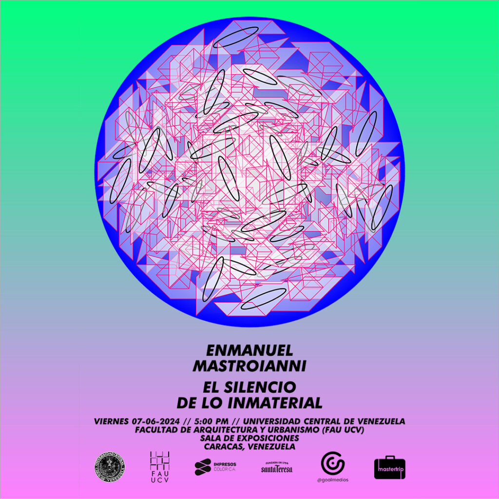 El joven artista Enmanuel Mastroianni se prepara para su más reciente exposición titulada “El silencio de lo inmaterial” en la ciudad de Caracas, cuya fecha de inauguración será el próximo viernes 07 de junio de 2024 a las 5:00 pm en la ‘’Sala de Exposiciones’’ de la Facultad de Arquitectura y Urbanismo de la Universidad Central de Venezuela (FAU UCV).