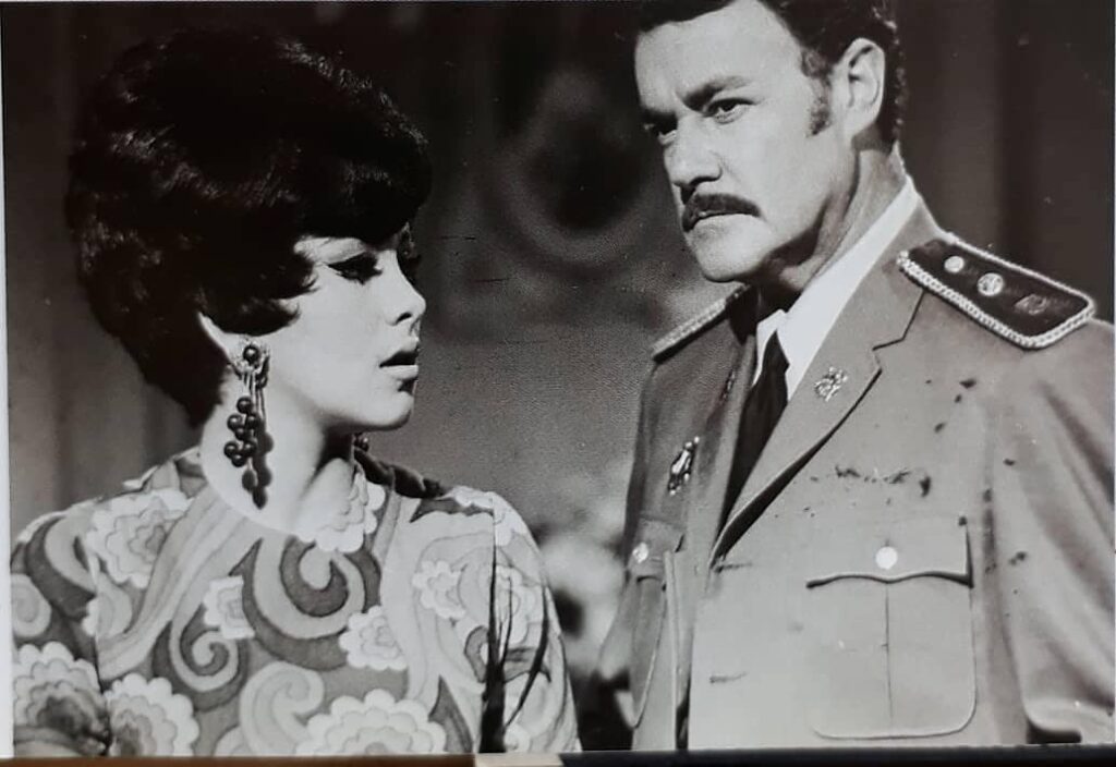 Con el primer actor Hugo Pimentel en sus inicios como actriz de telenovelas.