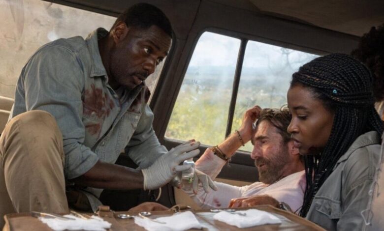Claro que la película, que vuelve al tropo habitual acerca de lo salvaje enfrentado a lo racional, atraviesa terrenos conocidos. Un tópico que en el cine suele tomar un tono exagerado y sin mayor profundidad. Para evitarlo, el guion de Ryan Engle toma la sabía decisión de empalmar el relato con un paralelismo emocional. El doctor Nate Samuels (Idris Elba) lleva varias cargas dolorosas a cuestas. Por un lado, debe lidiar con la pérdida de la que fue su esposa. Una tragedia que ocurrió en medio de una separación tumultuosa. Al otro extremo, tratar de consolar o en el mejor de los casos, reconfortar a sus hijas Norah (Leah Jeffries) y Meredith (Iyana Halley). La pequeña familia sobreviviente tiene una relación conflictiva y las heridas del duelo reciente, hacen todo más complejo.